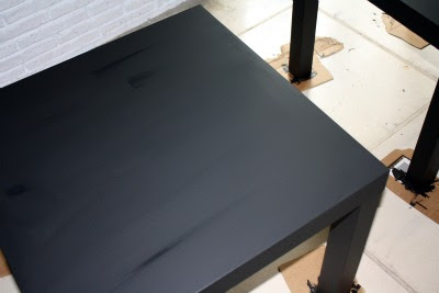 it looks great. this makes me want to steal my roommates tables (which are the same) and paint them!