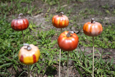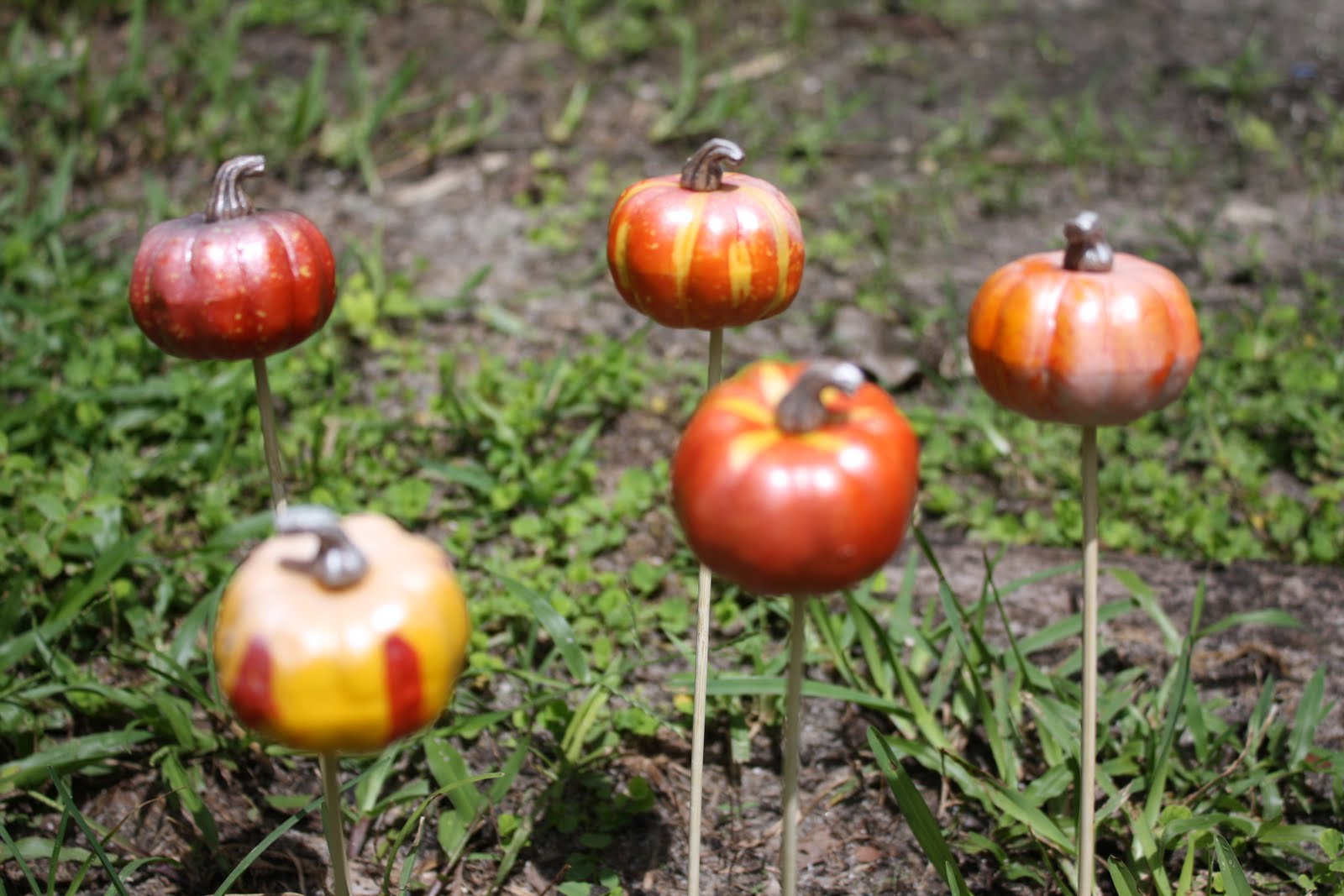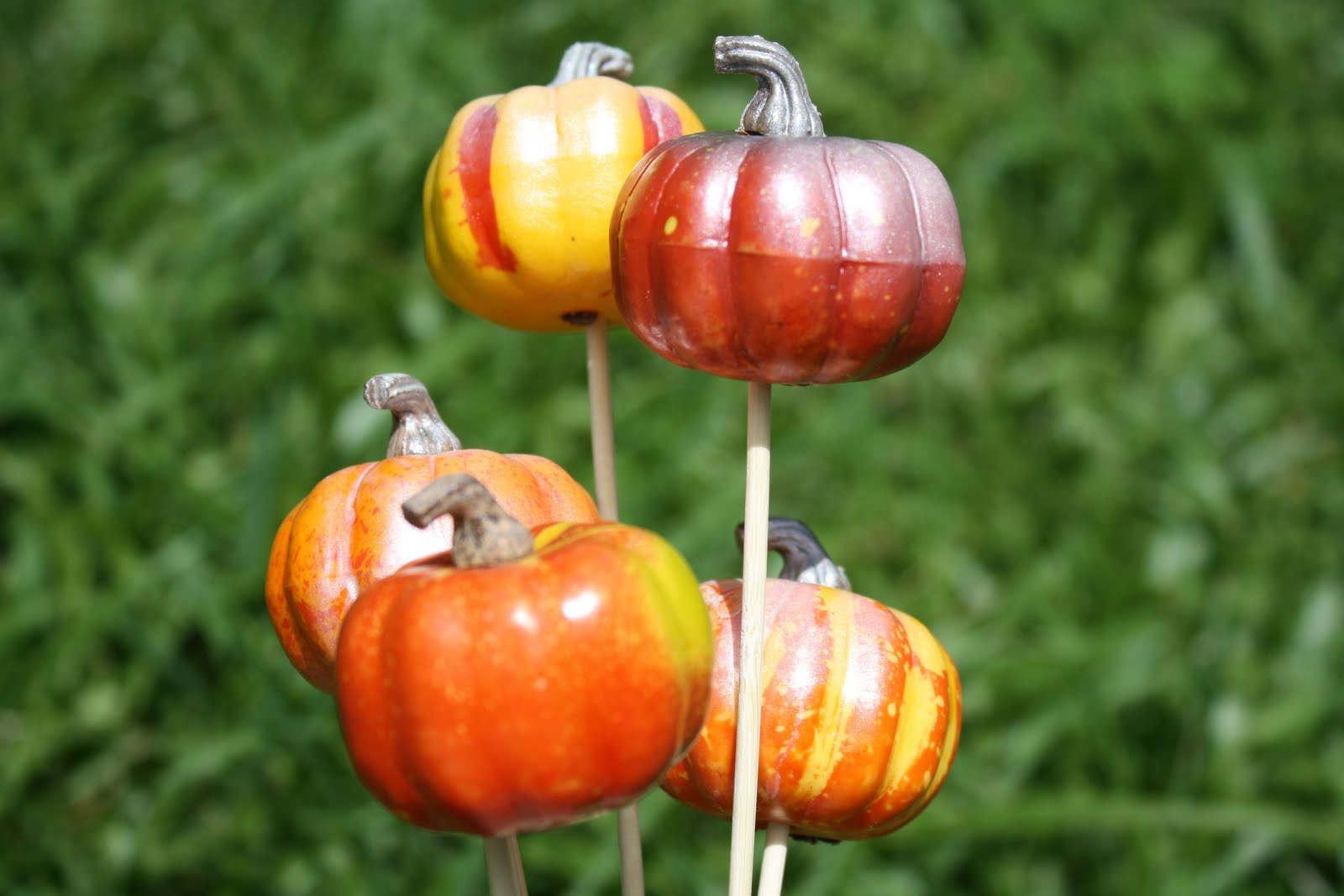 Pretty, and the skewer idea is genius! I recently spray painted some pumpkins too, great minds must think alike!