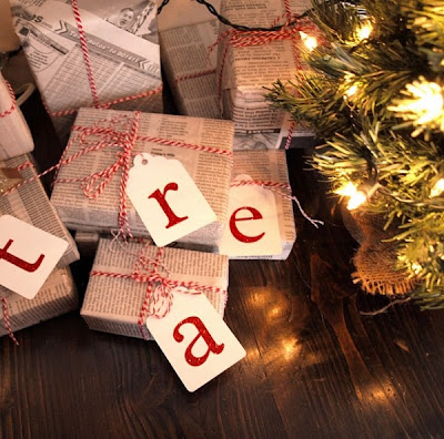 Have you seen the Trader Joe’s bags this season? They have cute brown paper “ribbon” and tags you can cut out. Too cute! I love simple wrapping paper.