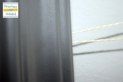 Want to know one of my other random loves? Baker’s twine. I used a yellow and white one I had for this and just used tape to attach it on the back of the frame in a zig zag pattern. A staple gun would have been great but I couldn’t find it so tape worked in a pinch. Just word oc caution, don’t use the tape. It started to fall down from the weight of the cards so a staple gun is much better for a long term solution.