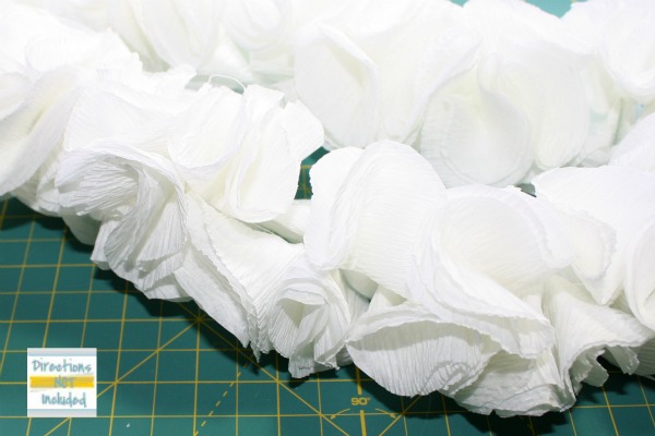 A few weeks ago, a few bloggy friends decided to form a group to support and challenge each other. We thought it would be fun to do a regular post making a craft out of the same material just to see how we would each interpret the challenge. Our first material was crepe paper. When I think of crepe paper, my mind automatically goes to crepe paper streamers. What I wanted to try out was making a crepe paper garland. After all, isn’t crepe paper the same as tissue paper? After a bit of research, I learned that crepe paper is: